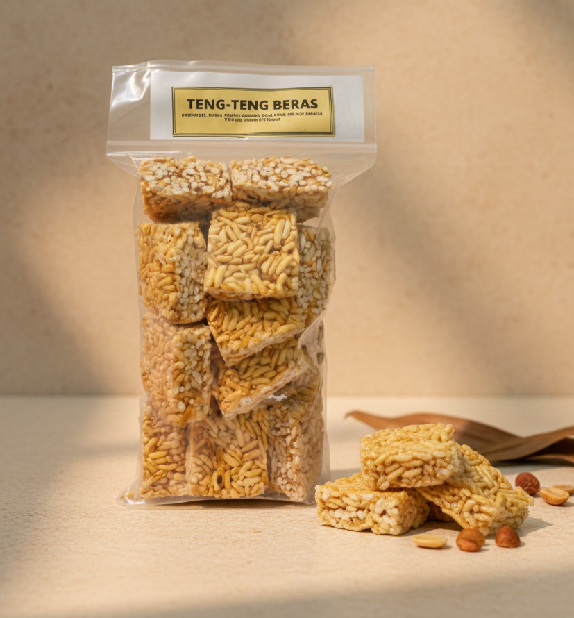 Teng teng beras banyak dijumpai di pasar tradisional atau dijadikan oleh-oleh khas di beberapa daerah. Rasanya yang gurih dengan sedikit rasa manis memberikan kenikmatan tersendiri bagi pecinta camilan tradisional Indonesia.